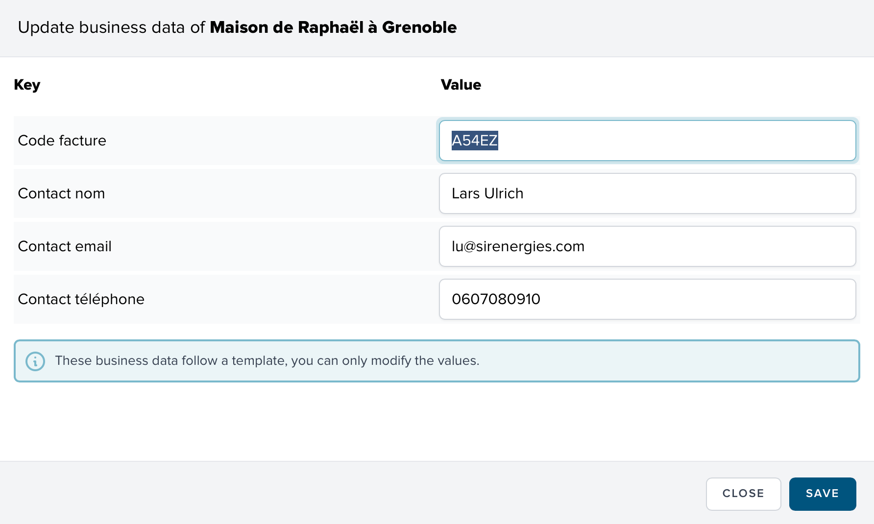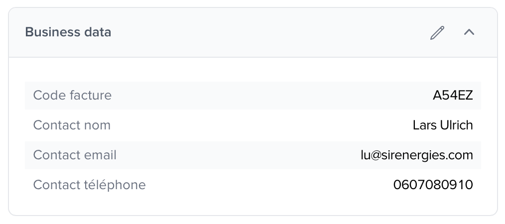 Business data enables you to associate structured information with your entities in Pilott: delivery points, subsidiary companies, and groups.