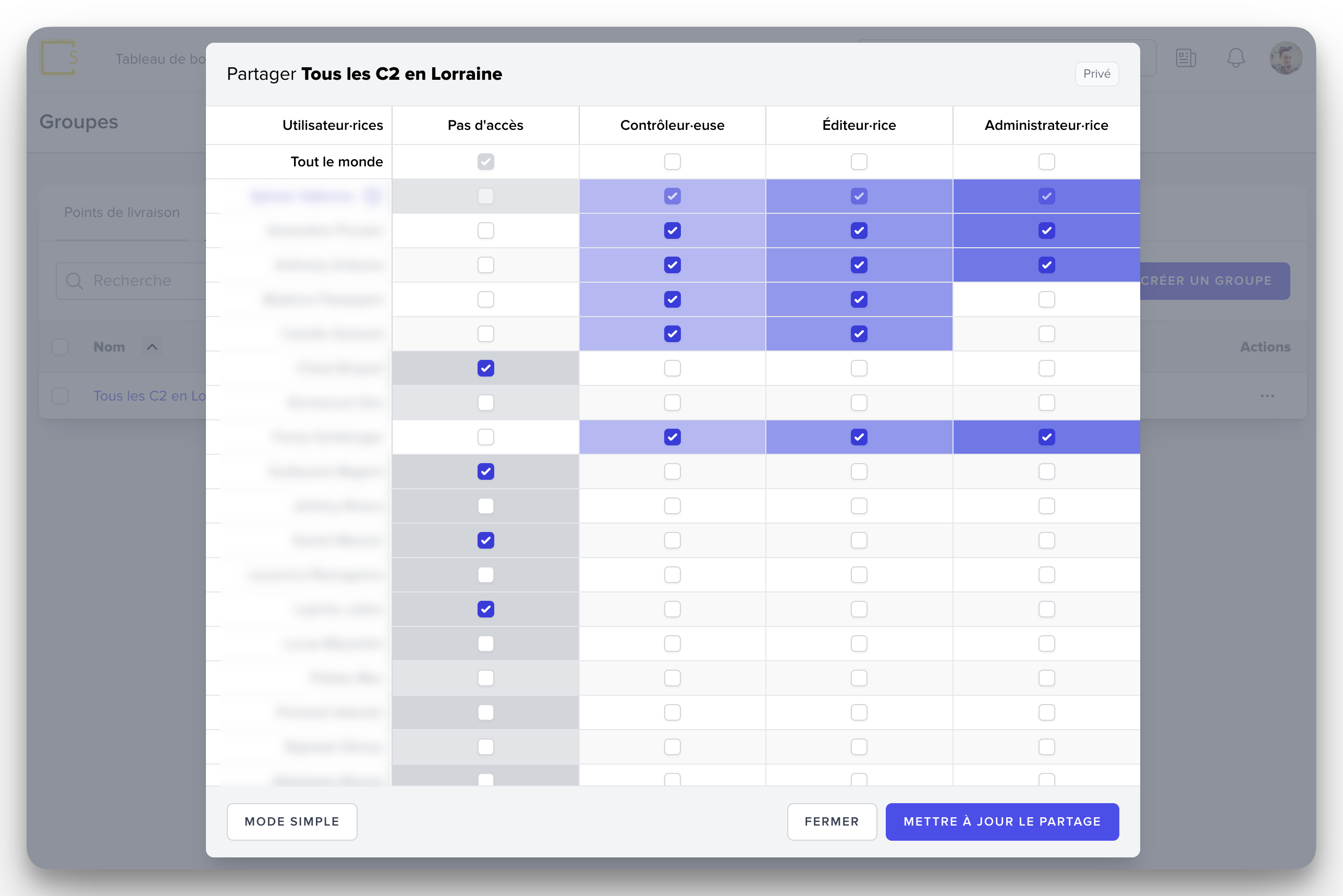 You can refine the roles of the members who have access to the group by clicking on ADVANCED MODE.