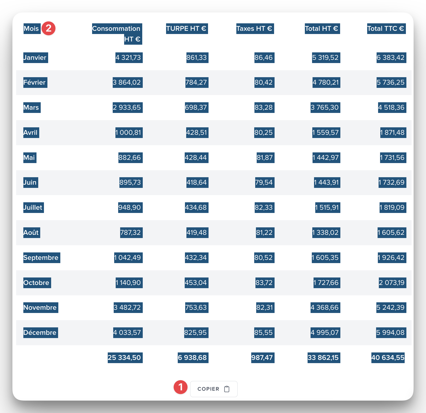 cliquer sur le bouton COPIER puis coller dans Excel afin de récupérer les valeurs,